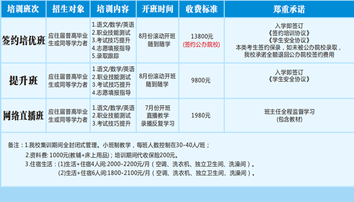 26届单招培训开设班型