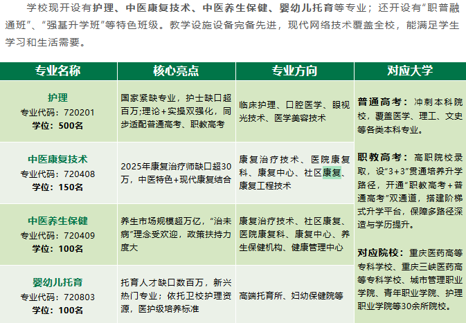 校内建有6000平方米专业实训中心,有75间多功能实验实训室,配备先进仪器设备588台(套),设有OSCE考试智能化管理平台、虚拟仿真实训室,是重庆市卫健委国家职业技能鉴定所认定的“护理职业技能鉴定基地”,跻身重庆市中职护理实训基地“第一方阵”。依托先进实训设施与专业带教团队,在高度仿真场景中锤炼实操本领,为未来职业发展筑牢根基。