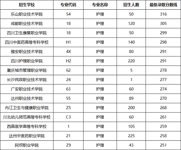 2025年护理专业单招各公办院校录取分数线: