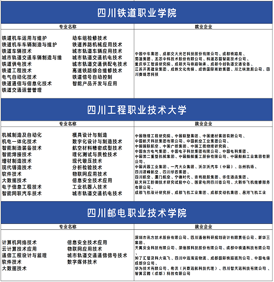 四川邮电职业技术学院是四川省人民政府批准成立的公办高职院校,是国家骨干高职院校和“双高计划"建设单位,是中国西部第一所独立设置的邮电通信类高职院校,是国家优质专科高等职业院校,是国家首批现代学徒制试点单位、中国特色高水平高职学校建设单位。为中国人民解放军陆军、火箭军及武警部队定向培养士官。