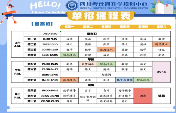 我们自编四川高职单招(中职潽高)高质量教材。摆脱了传统的枯燥的上课模式,由浅入深,逐步带领学员掌握从初中课程至单招课程。全课程由经验丰富的高级教师主讲,辅助老师督学。使学员能真正做到听、说、读、写全面发展。